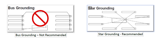 總線接地有時(shí)似乎是一種方便的方法,但這種技術(shù)往往會(huì)產(chǎn)生最壞的結(jié)果。鏈的每個(gè)支路中的電阻將設(shè)備置于不同的接地電位,并且不如星形接地方法有效。