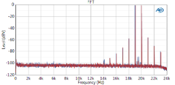 如前一節(jié)中關(guān)于THD+N的討論,很難獲得關(guān)于10 kHz以上諧波失真的有用數(shù)據(jù),因?yàn)橹C波產(chǎn)物落在音頻帶寬之上,并且通常超過(guò)典型的THD+N測(cè)量帶寬。