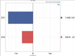 使用音頻分析儀測(cè)試直流偏移的過(guò)程相對(duì)簡(jiǎn)單。連接負(fù)載后,放大器開(kāi)啟,直流電平測(cè)量用于測(cè)量直流電平。這不使用施加到放大器輸入的AC信號(hào)。下圖顯示了該測(cè)試的測(cè)量結(jié)果示例。