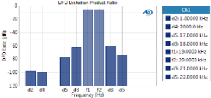 差頻失真(DFD)是在IEC 60268-3規(guī)范中標(biāo)準(zhǔn)化的高頻雙音IMD測(cè)試的一個(gè)示例。DFD測(cè)試適用于AB類(lèi)和D類(lèi)放大器。該測(cè)試通常作為設(shè)計(jì)和開(kāi)發(fā)周期的一部分進(jìn)行,但通常不作為驗(yàn)證或生產(chǎn)測(cè)試的一部分。